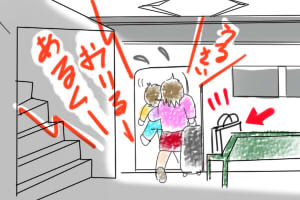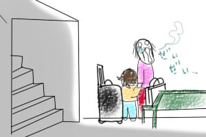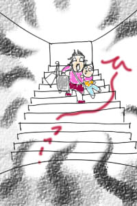 小脇に娘(十数キロ)、片手にキャスター付鞄(味噌・漬物入り10キロ弱)。